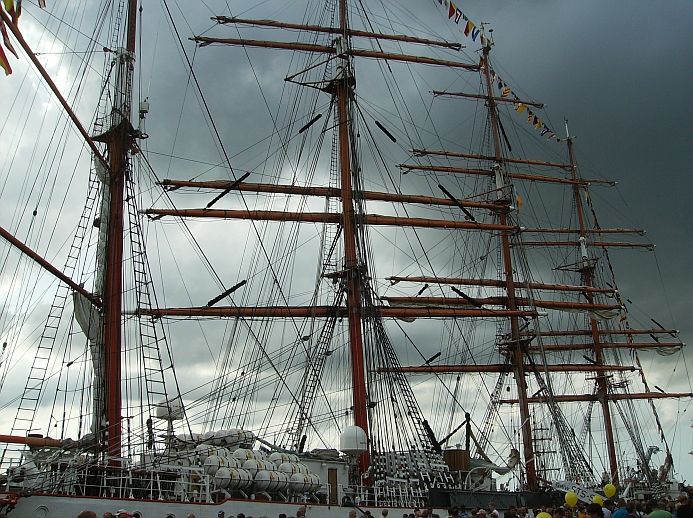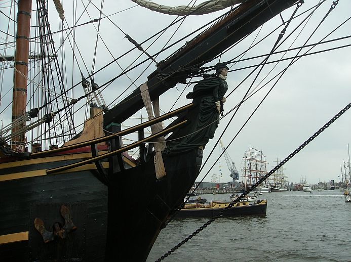 met schepen die moeizaam